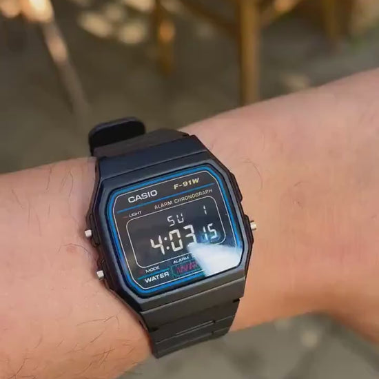 EON “Classic Black” – F-91W Custom Casio Mod – All-Black Modified Casio Digital Watch with Oil-Filled Case – Hydromod Digital Watch - F91