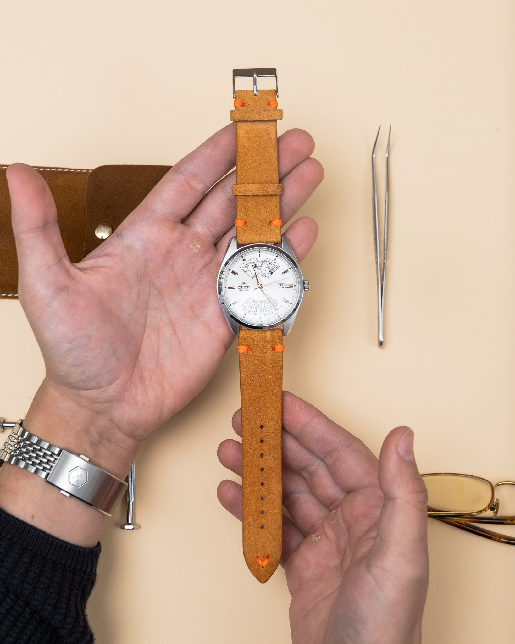 Light Brown Brushed Leather Watch Strap – 22mm – Genuine Leather Watch Bracelet