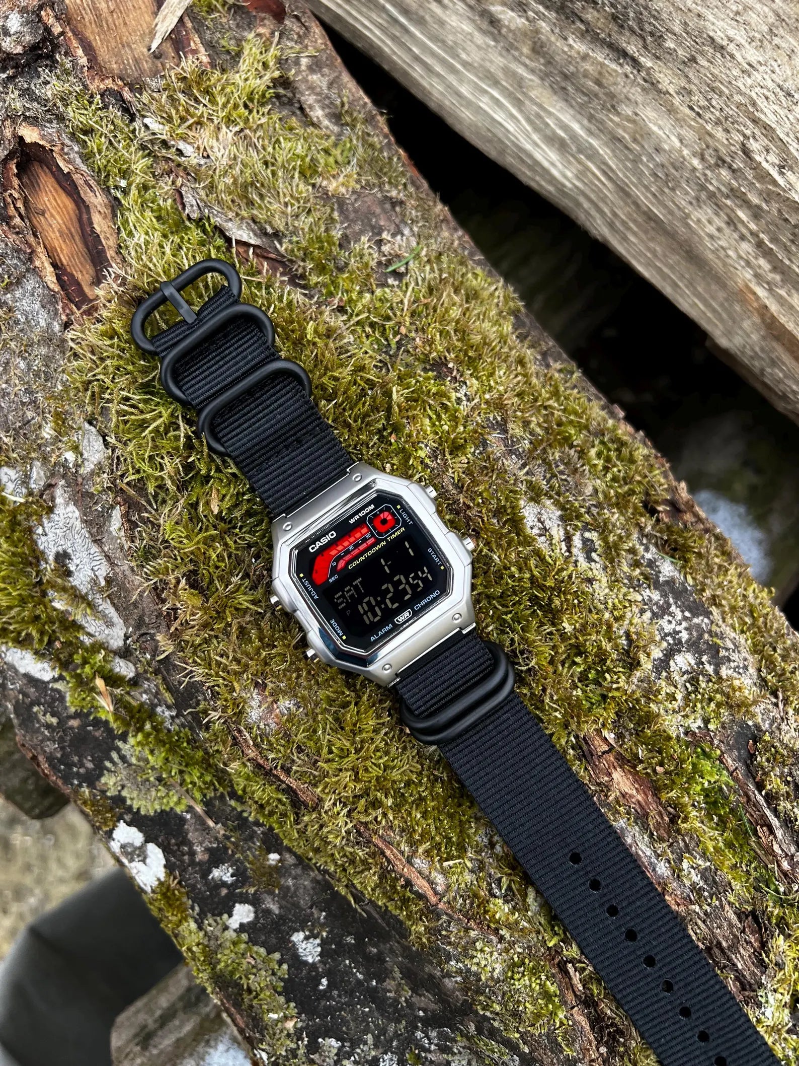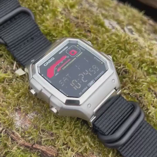 EON “Redline Meter” Mod – Custom Full Metal Modified Casio WS-1600 Watch with Red-Black Screen – Hydro Mod – 22mm Nylon Strap – Casio Mod