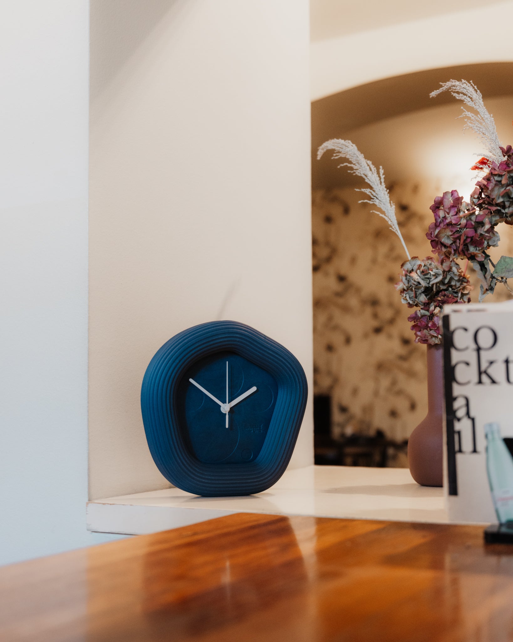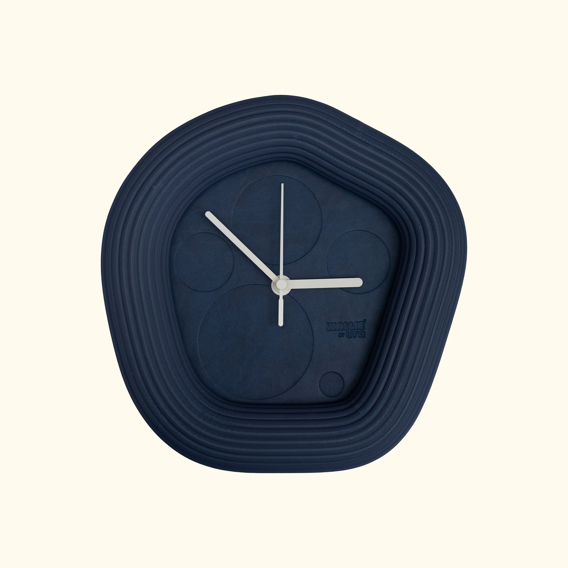 Wallie clock was born with one idea in mind - to show that clock doesn't have to be typical, round and boring. The idea was to make a beautiful shape that catches the eye, yet remains asymmetrical as all things in nature. It was co-designed with our dear friend and designer Ian Farkaš here in Croatia. Ian is a graphic designer and typography specialist with many awarded and acclaimed projects in his field. We have worked on this clock for more than a year, carefully crafting each design element to bring softness to any space. Each clock is 3D-printed in our Croatian studio using recyclable matte PLA, minimizing waste and utilizing matte look to avoid light refraction. Dial is custom made from imitation leather and it is manually thermally pressed to create ridged design. Clock hands are hand painted according to color theme. As for mechanism, Wallie uses premium, sweeping hands movement providing beautiful uninterrupted movement of seconds hand in complete silence.